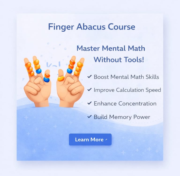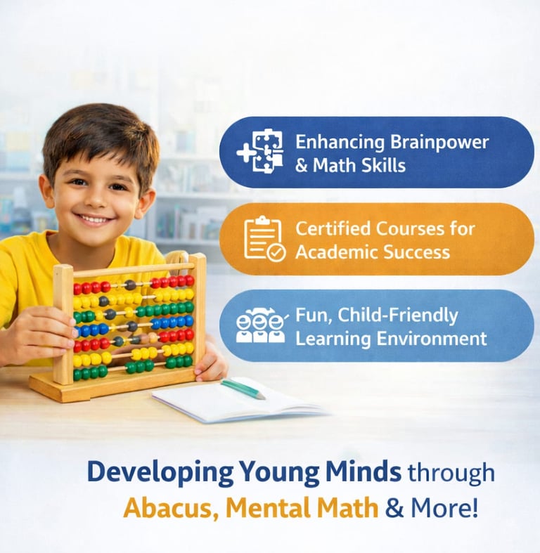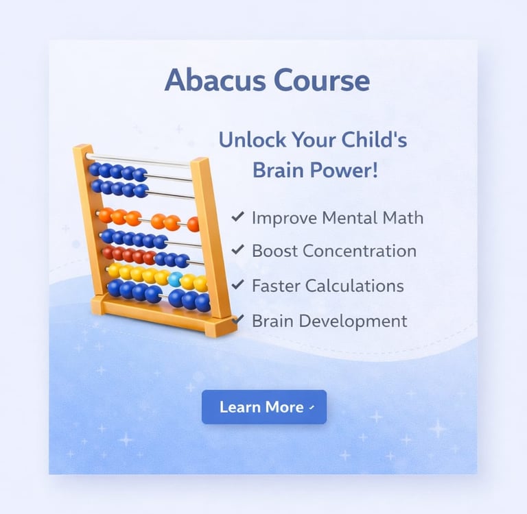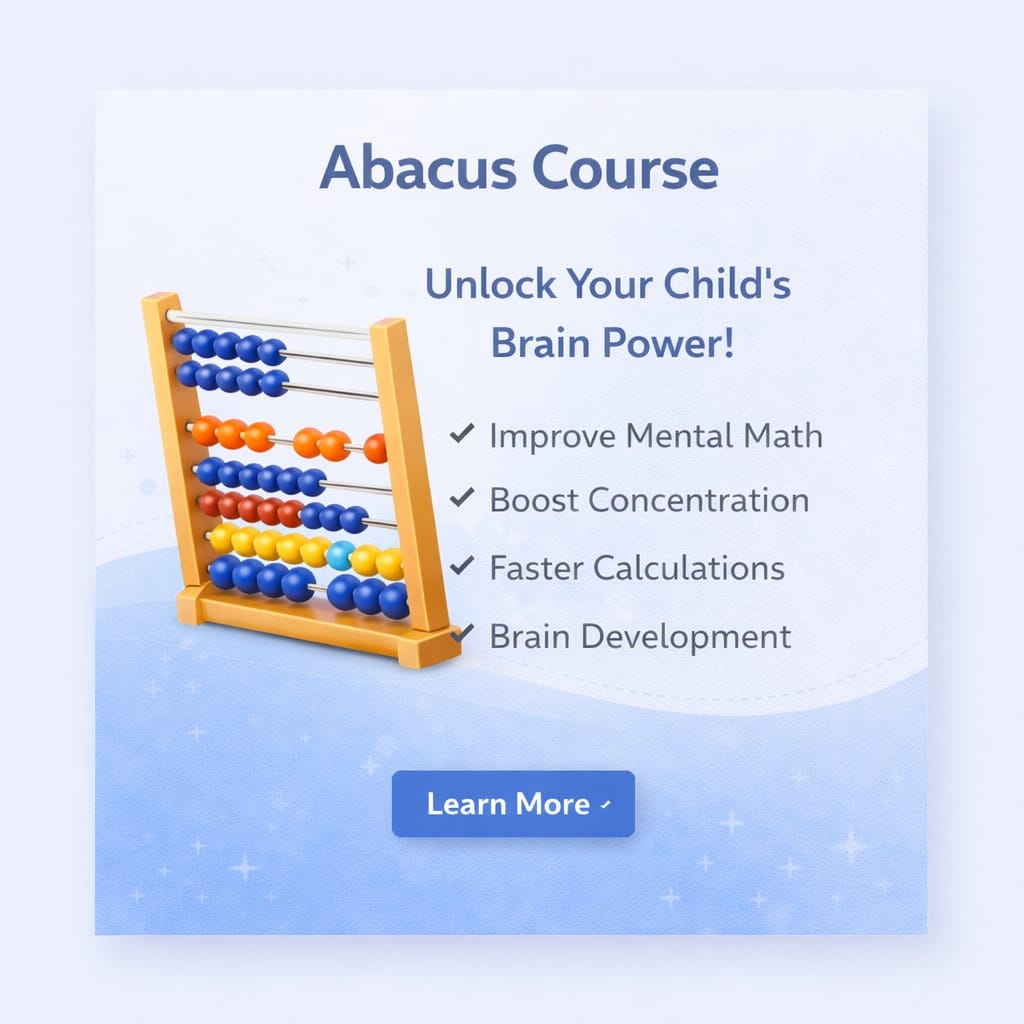 We offer a variety of skill-building programs including Abacus, Mental Math, Finger Abacus, Brain Development, and Handwriting Improvement, each focused on improving a child’s academic performance and overall intellectual growth.
