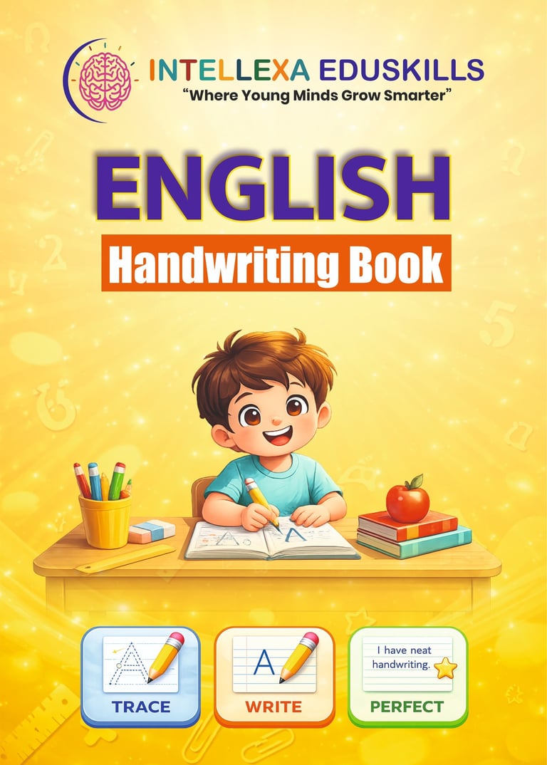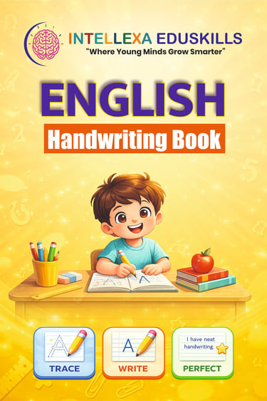 The Intellexa EduSkills English Handwriting Book is designed to help children improve neatness, letter formation, and writing confidence. It includes practice of capital and small letters along with simple words and sentences. Perfect for beginners to develop clear, Beautiful and consistent handwriting through easy and engaging exercises.